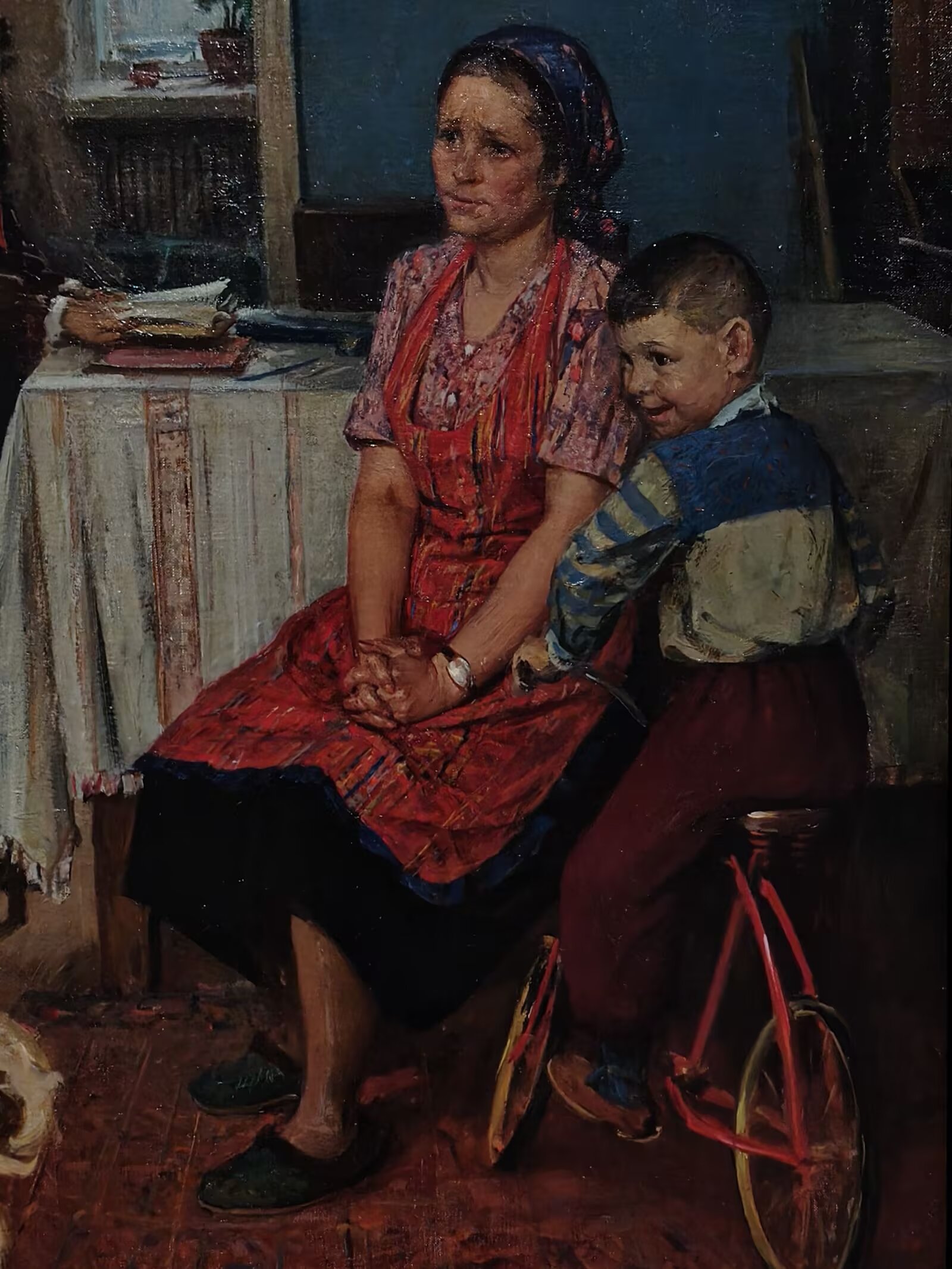 依稀记得,这幅作品出现在小学某学段的美术课本里。或许,也曾出现在语文课本的彩页部分。这是一个学业水平处于中下等的孩子,在考试成绩出来后所面临的窘境。画作是前苏联时期创作的,但它所反映的,却是一个许多上过学的人都会面对的问题。不知您第一次见到这幅画时,内心是否受到过触动?