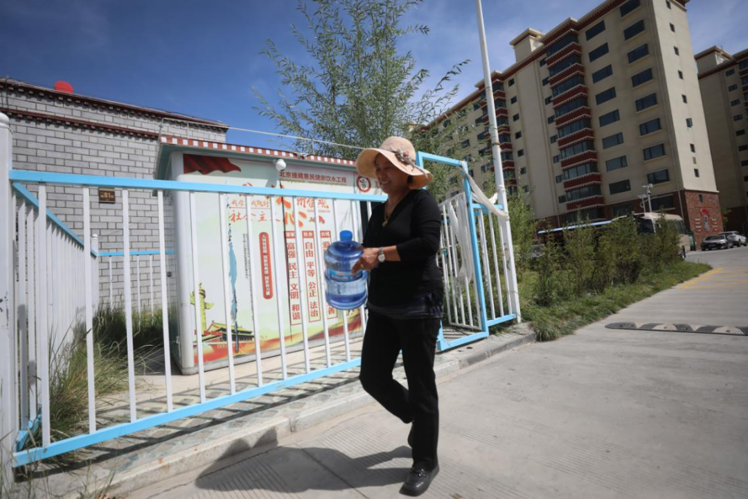 除了加强水源地保护和提升水质,北京援藏团队还积极协调水电气公司,在居民较为集中的区域建设了百余个集饮用水水质净化、供水于一体化的惠民健康饮水“取水房”。单个水站占地5平方米,一天可满足200户、每户15升的饮水需求。