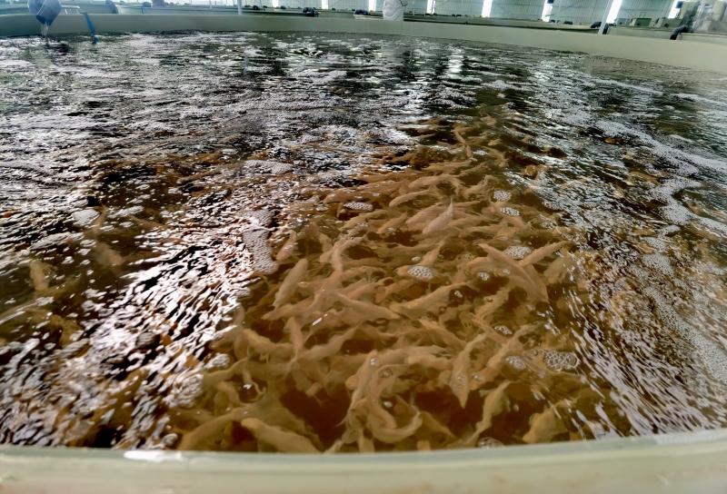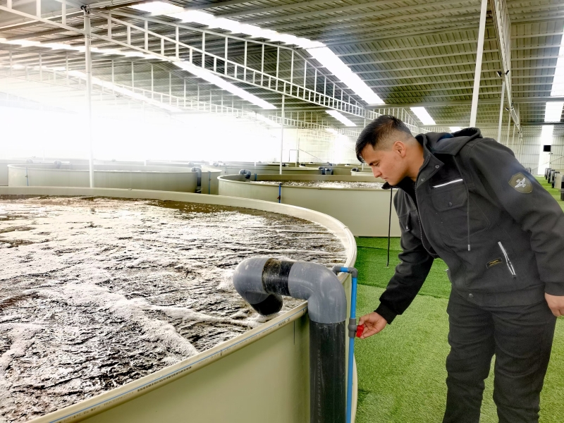 成立于2023年11月的和田域见疆来水产养殖有限责任公司,目前已建成56座现代化养殖池,采用室内人工养殖模式,为各种鱼类提供了一个恒温、恒湿、恒氧、适宜的生长环境。