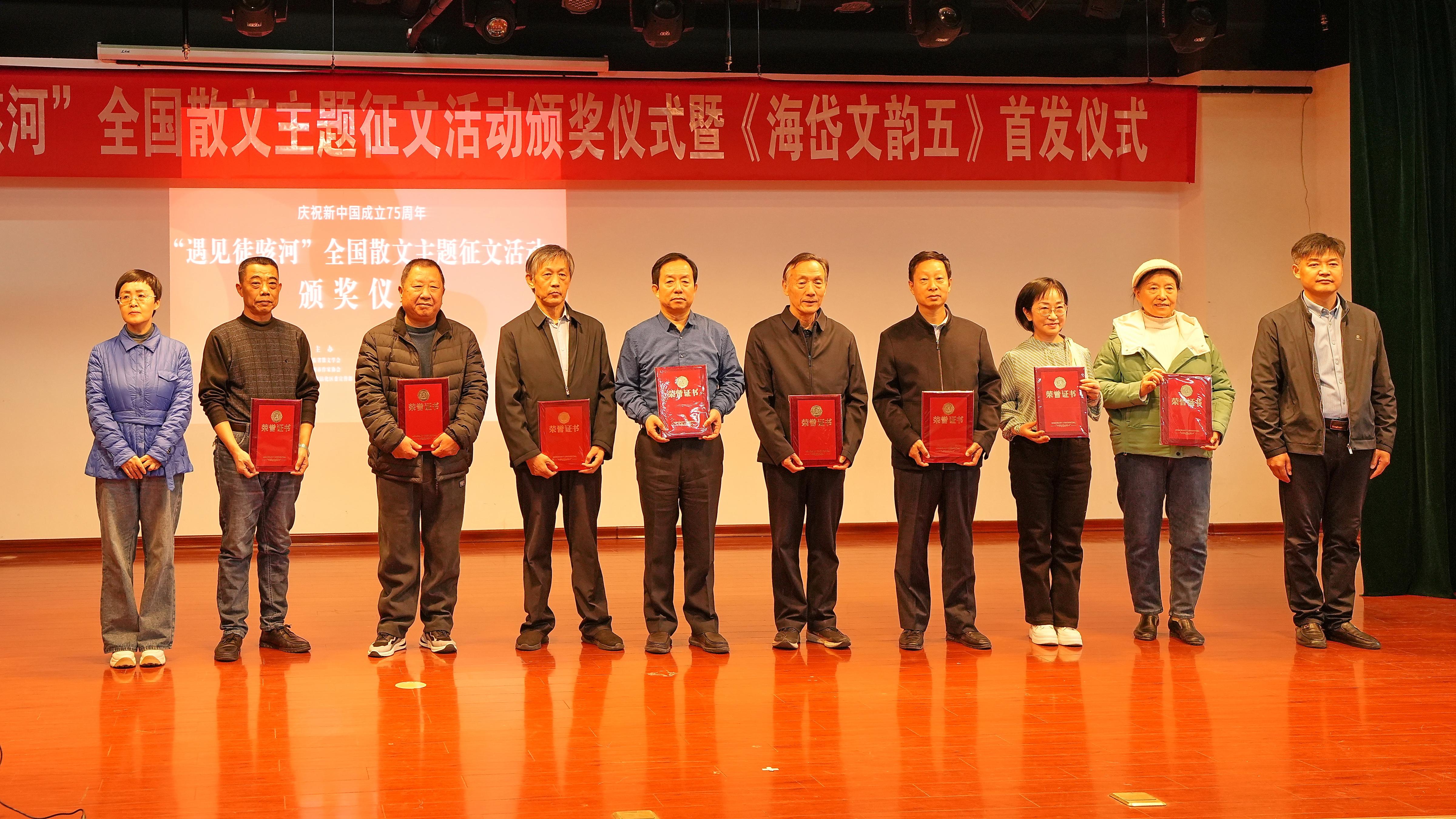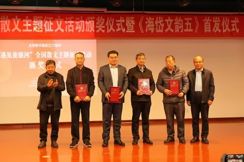 12月1日,庆祝新中国成立75周年“遇见徒骇河”全国散文主题征文活动颁奖在济南市历城区文博中心隆重举行。济阳区作协有5人获奖。其中齐建水的《徒骇河遇见秋》获荣誉奖,王良杰的《童年的“姥娘河”》、杨光路的《槐花那个飘香》、李三军的《难忘徒骇河的好》、卢成燕的《我的村庄我的河》获优秀奖。 会上,济阳区作协副主席杜秀香被聘为徒骇河流域文学创作中心副秘书长。