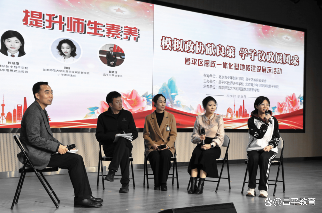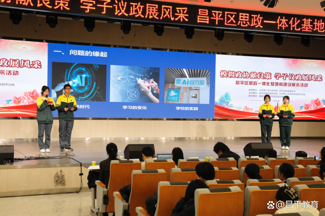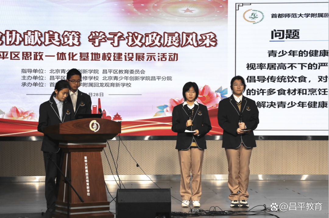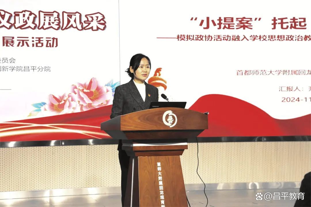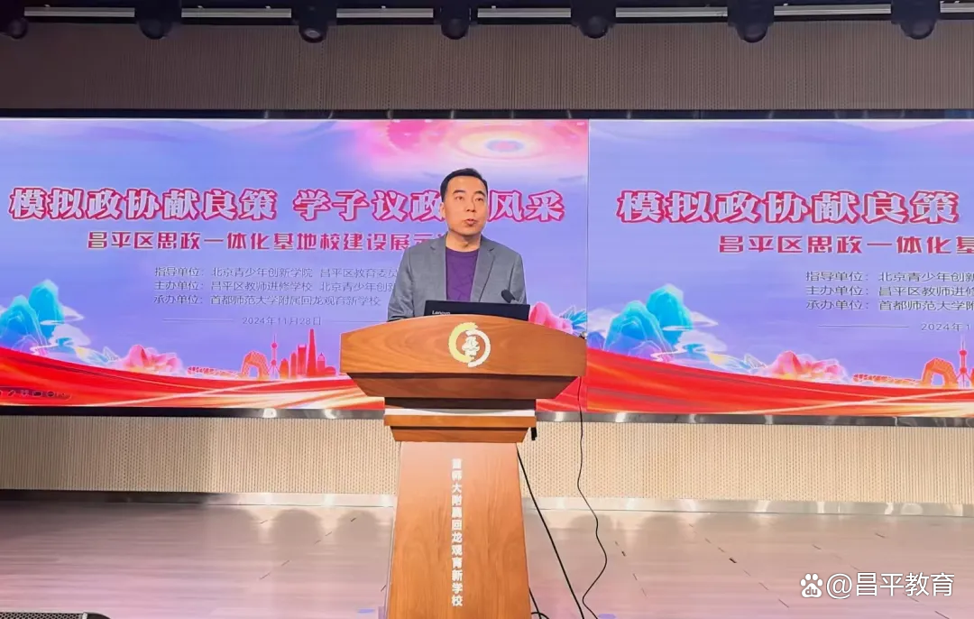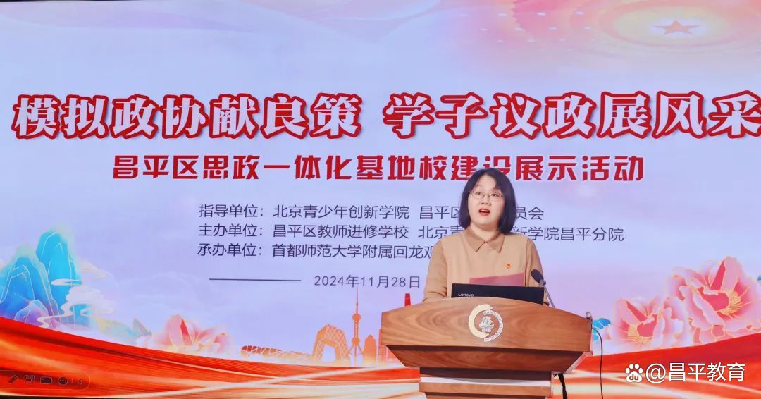11月28日,“模拟政协献良策、学子议政展风采”昌平区思政一体化基地校建设展示活动在首都师范大学附属回龙观育新学校举行。