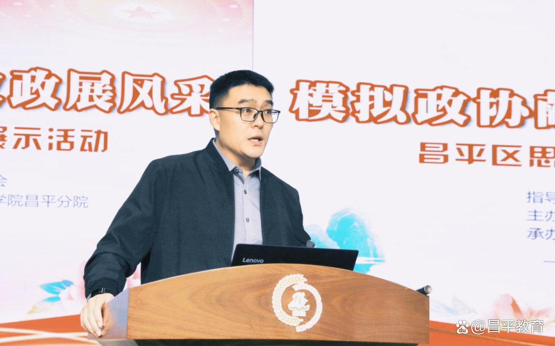 昌平区教育委员会副主任、北京青少年创新学院昌平分院副院长苏杰作大会致辞。他表示,本次活动是昌平区模拟政协的成果展示,体现昌平区“大思政课”建设和拔尖创新人才培养的实践与思考。昌平区将深挖区域优质资源,凝聚多方育人合力,充分用好“模拟政协”育人平台,让更多的学校开展多样态、多渠道、多载体的育人实践,培育具有综合素养和创新意识的全面人才,努力推动昌平教育高质量发展。