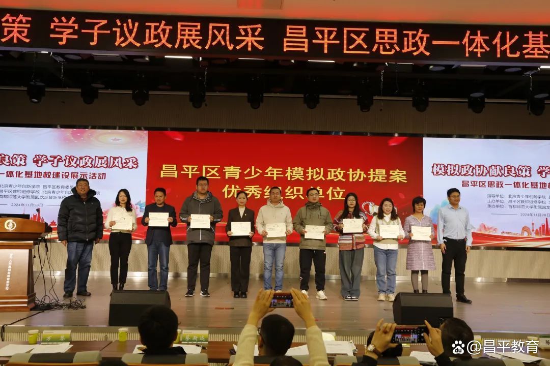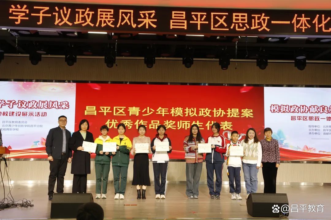 活动现场为昌平区优秀模拟政协提案作品师生代表和优秀组织学校颁奖。
