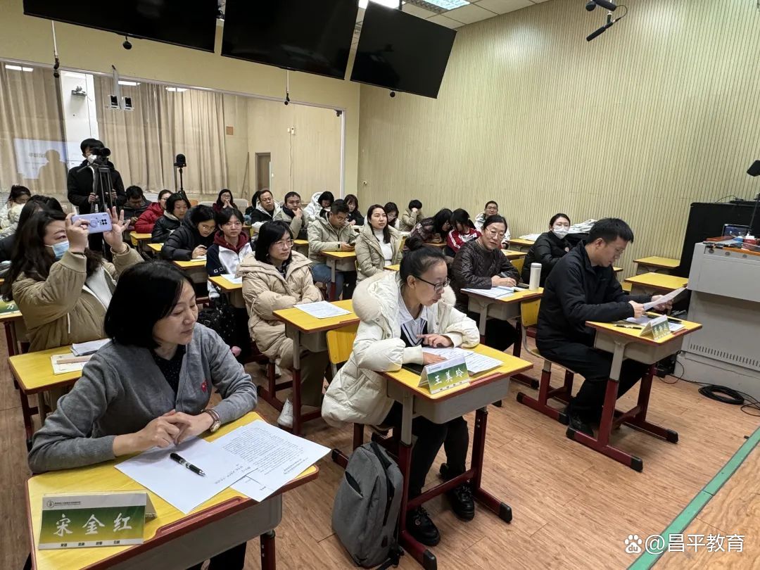 ▲分会场评委:区政协委员蔡斯远、区教师进修学校小学道德与法治教研员宋金红、北师大昌平附属学校思政教师王美玲