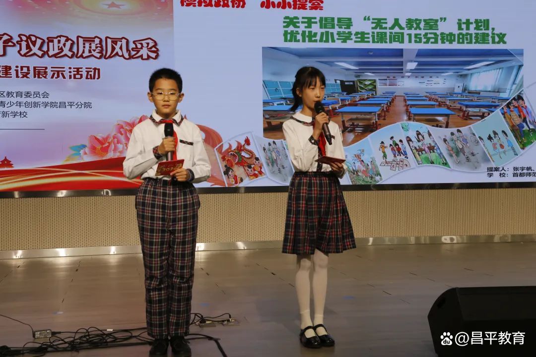 首师大附属回龙观育新学校、清华附中昌平学校、大东流中学、昌盛园小学的学生展示六个模拟政协提案。由区政协委员、区思政课教研员、中学骨干教师组成的评委组现场就提案进行提问和指导点评。