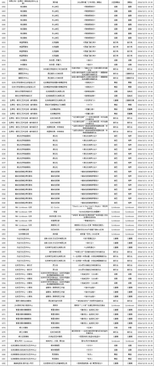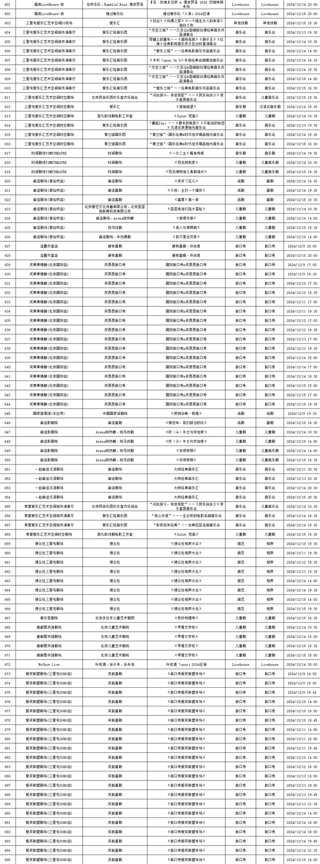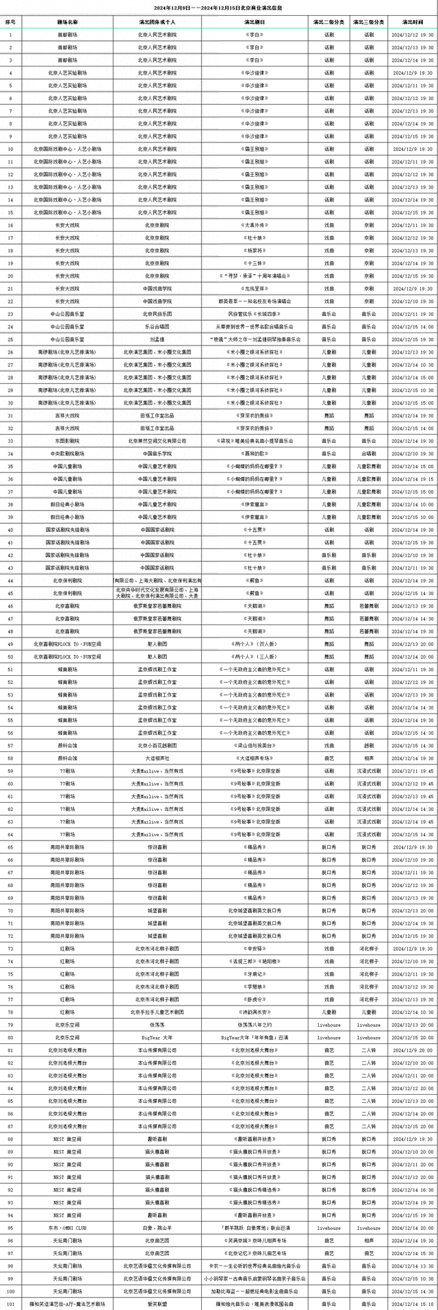 2024年12月9日-2024年12月15日北京商业演出信息新鲜“出炉”!话剧、喜剧、京剧、昆曲、北京曲剧、音乐剧、儿童舞台剧、儿童亲子剧、儿童木偶剧、儿童音乐剧、儿童剧、儿童魔术剧、儿童杂技、沉浸式戏剧、沉浸式喜剧、音乐会、演唱会、Livehouse、芭蕾舞剧、相声、评书、鼓曲、曲艺、二人转、脱口秀、综艺、杂技、等一大波精彩演出来了,你想看的全都有,安排起来!