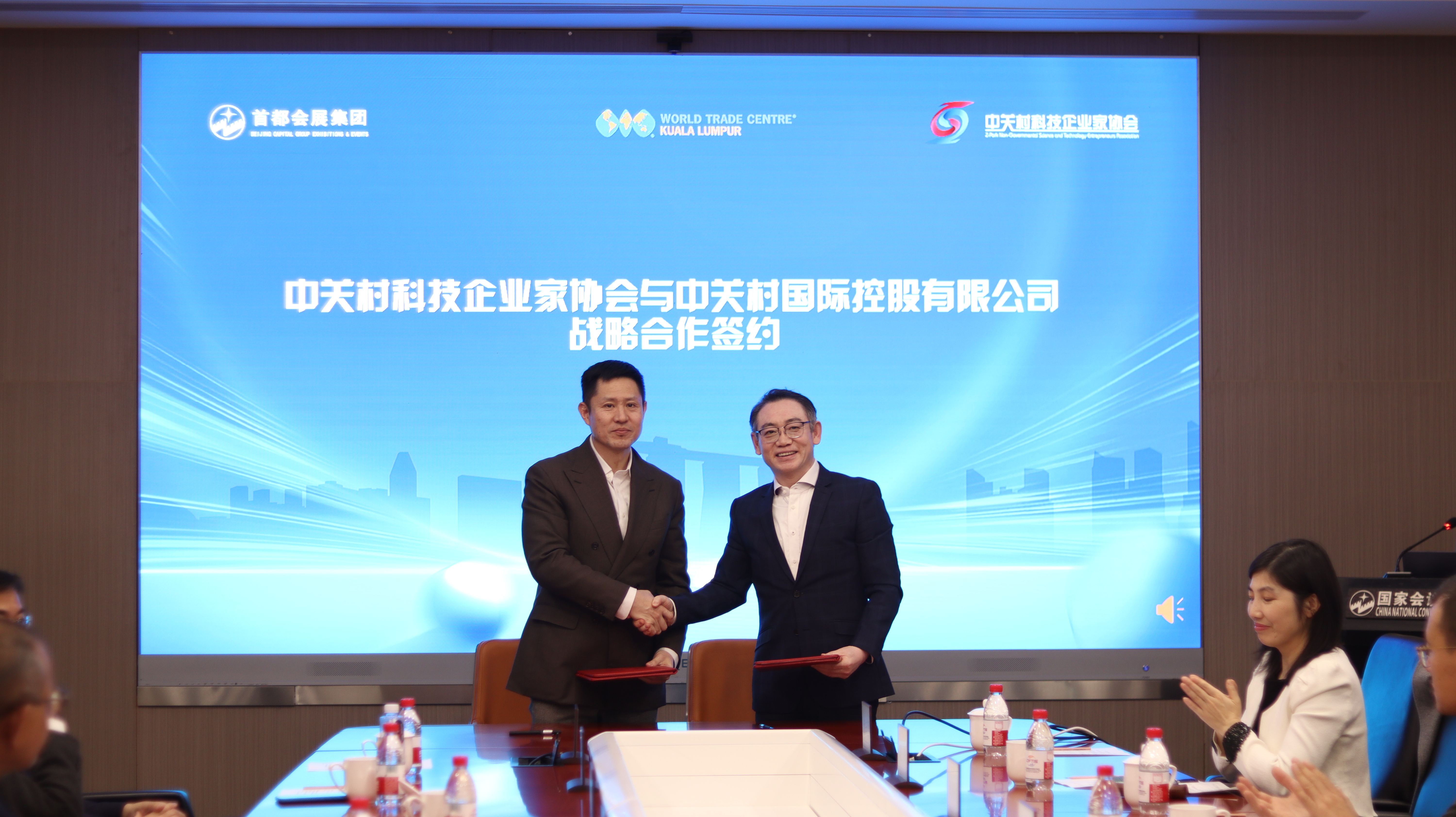 签约活动环节,中关村科技企业家协会与中关村国际控股有限公司签订了战略合作协议,打开中关村科技企业国际合作新局面,推动科技创新和产业升级,降低企业出海风险,全方位助力企业在国际市场上取得更大成功。