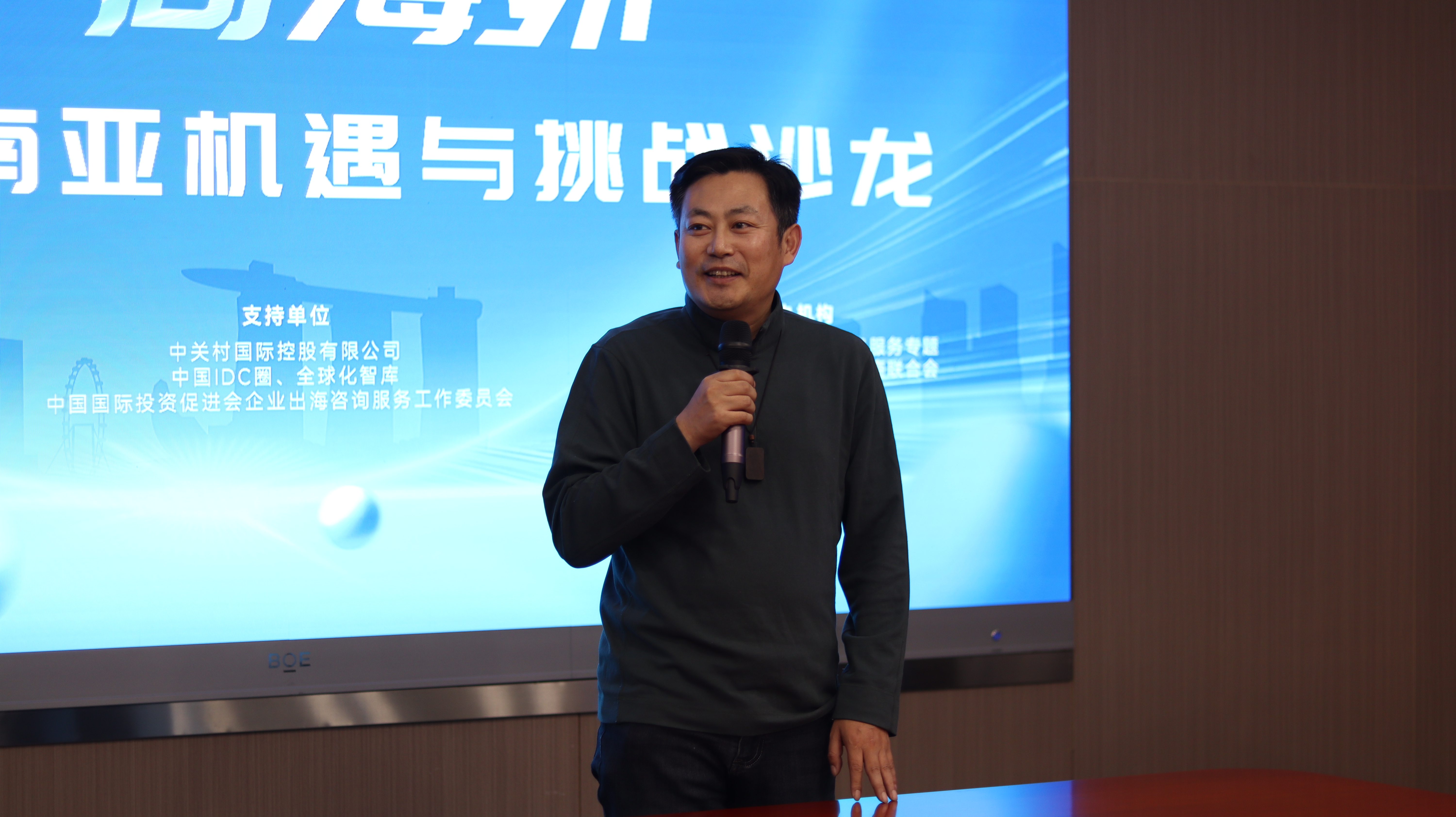 中关村国际控股有限公司总经理卢江介绍了中关村海外网络节点布局、跨境服务体系及企业服务案例,展示了中关村在推动中国企业国际化方面的积极探索和成果。