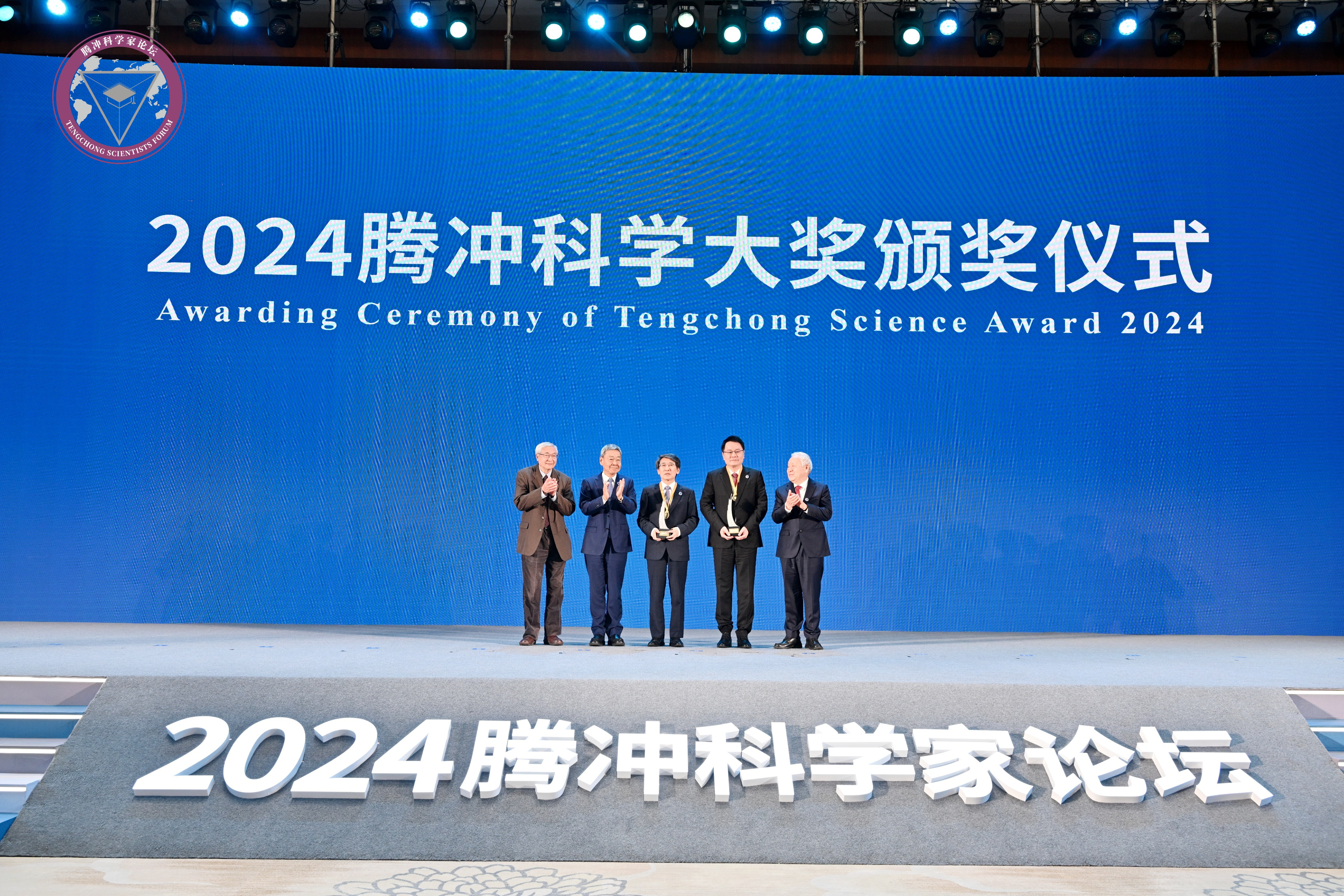 开幕式上,许智宏宣读第二届腾冲科学大奖获奖者名单,谢晓亮与南方科技大学校长、中国科学院院士薛其坤共同荣获2024腾冲科学大奖。腾冲科学家论坛主席、清华大学原校长、中国科学院院士顾秉林,论坛联合主席、南开大学原校长、中国科学院院士饶子和为薛其坤、谢晓亮颁奖。