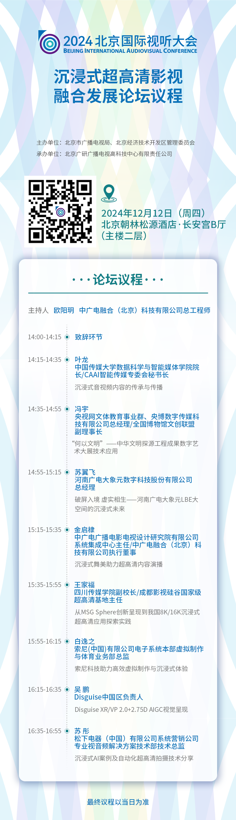 抢先看!2024北京国际视听大会沉浸式超高清影视融合发展论坛议程