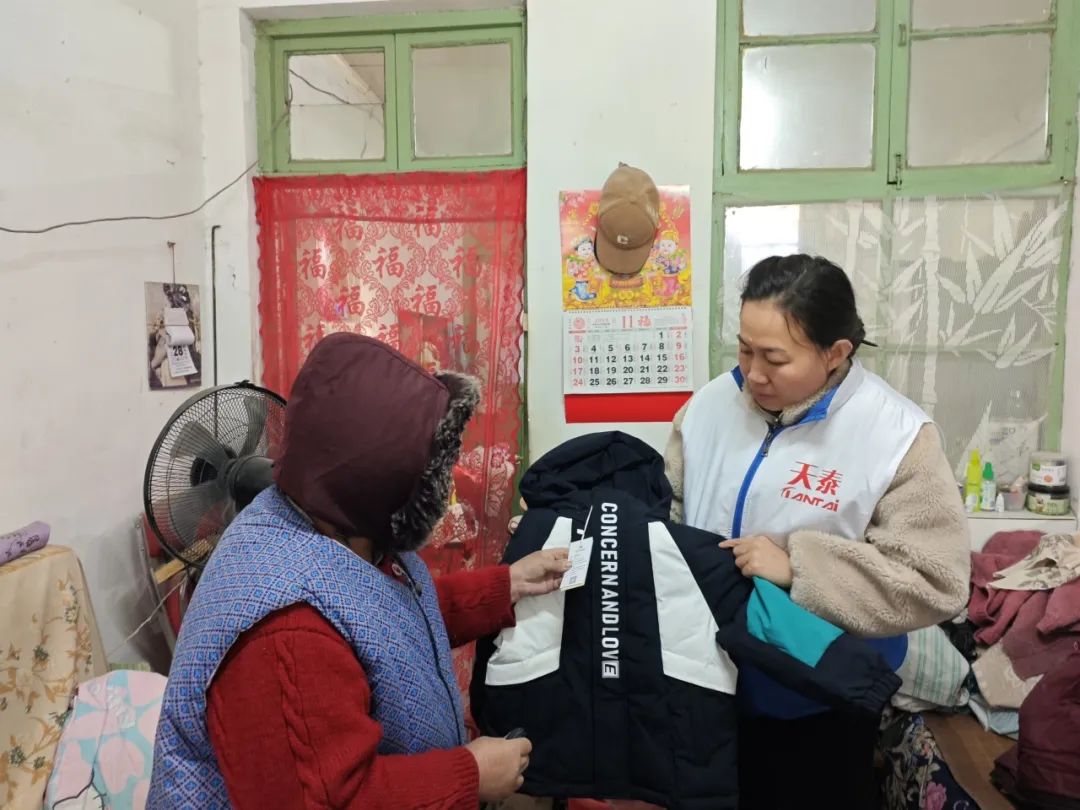 永外街道办事处副主任邵鲲带领民生保障办、困服所相关工作人员到困难群众家中进行慰问,将一件件饱含温暖与关怀的冬衣亲手交到孩子们手中。在现场,邵鲲主任与孩子们进行了亲切的交流,深入了解他们的学习和生活状况,并鼓励他们在面对挑战时保持乐观和积极的态度。一名孩子兴奋地穿上了新衣,喜悦之情溢于言表“衣服太漂亮了,我好喜欢!”。一名家长说:“多亏了街道做我们的后盾,帮助我们生活越来越好。”