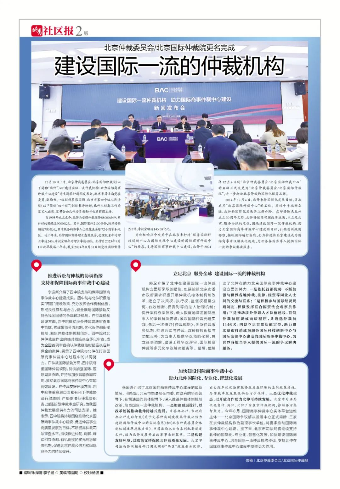 为积极响应中央关于在北京市打造“服务国际科技创新中心与国际交往中心建设的国际商事仲裁中心”的要求,支持国际商事仲裁中心建设,北仲于2024年12月4日将“北京仲裁委员会/北京国际仲裁中心”的名称正式变更为“北京仲裁委员会/北京国际仲裁院”,进一步打造北京仲裁的国际化服务品牌。