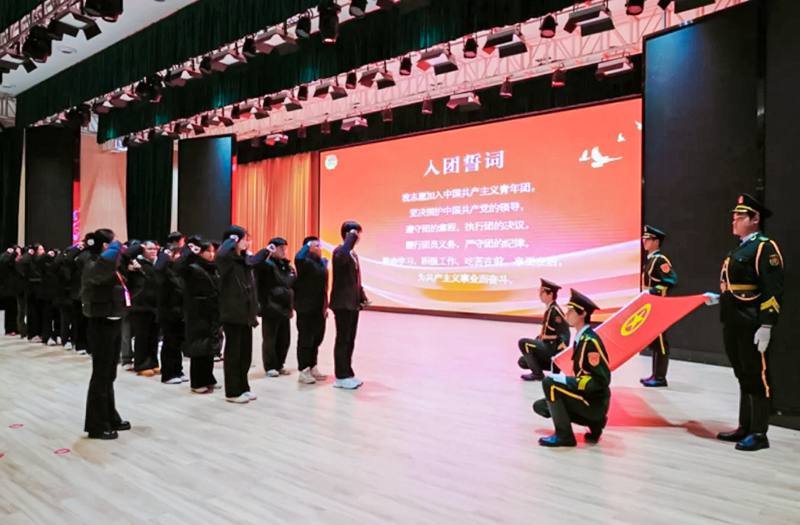 在庄严的入团宣誓环节,新团员们面向团旗,右手握拳,以铿锵有力的声音宣誓,誓言回响在礼堂的每一个角落,彰显了新时代青年的坚定信念与豪迈情怀。