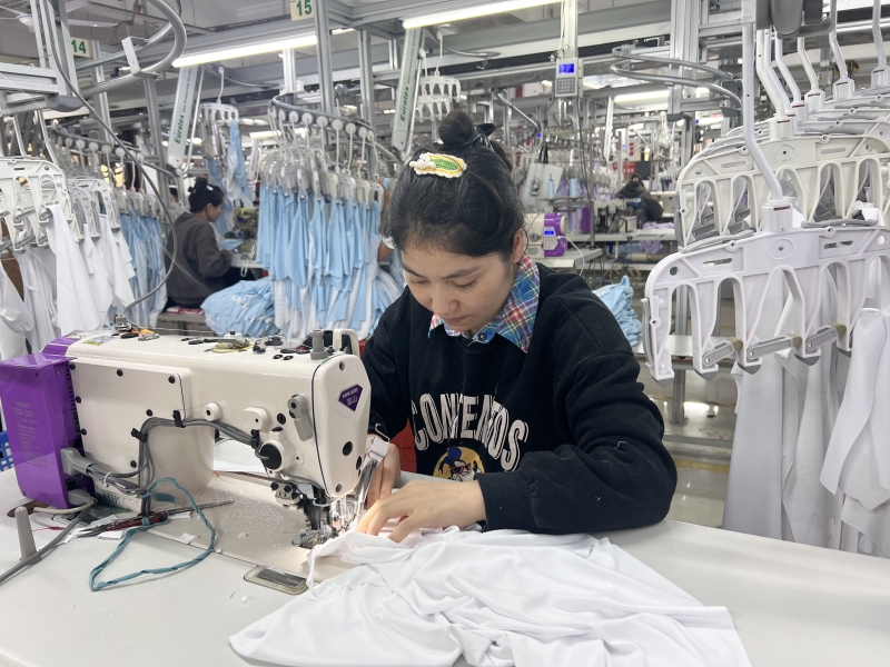 在这里,有和田的300余名实习生。走进服装制作车间,机器的运转声和连贯的指令声不绝于耳。一排排工作台前,工人们手法娴熟,裁剪、缝制、熨烫,每道工序有条不紊,一件件衣物在他们灵巧的双手中成形,他们已经能够独立完成体育用品加工,成为岗位主力。