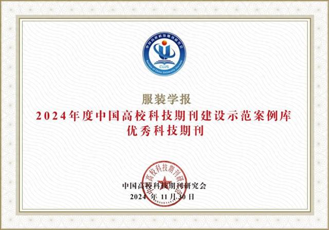 此次入选,不仅是对《服装学报》办刊成果的肯定,更是对未来发展的激励。《服装学报》将以此为契机,坚守品质,不断创新,扩大期刊学术影响力,打造一流学术交流平台,推动我国高校科研学术事业的高质量发展!