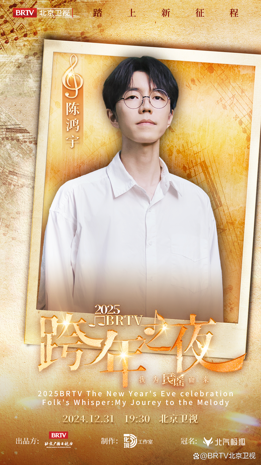 #北京卫视跨年之夜阵容官宣 民谣随风起,经典抚人心~12月31日19:30 由北汽极狐冠名的#北京卫视跨年 之夜等你感受沉静的个性!