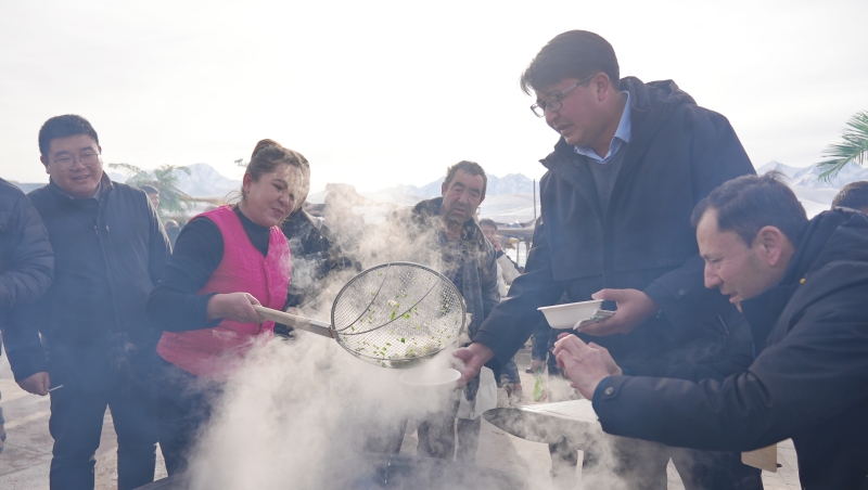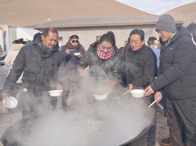 不一会儿,饺子纷纷下锅。煮好的饺子盛在碗里,大家围坐在一起,品尝着美味的饺子,驱散了冬日的严寒。天津游客汪培激动地说:“在景区吃饺子,还是头一回,和田实力宠客。这饺子味道太棒了。在昆仑山景区,四周雪山环绕,看着雪景吃饺子,这种体验太难忘了!”