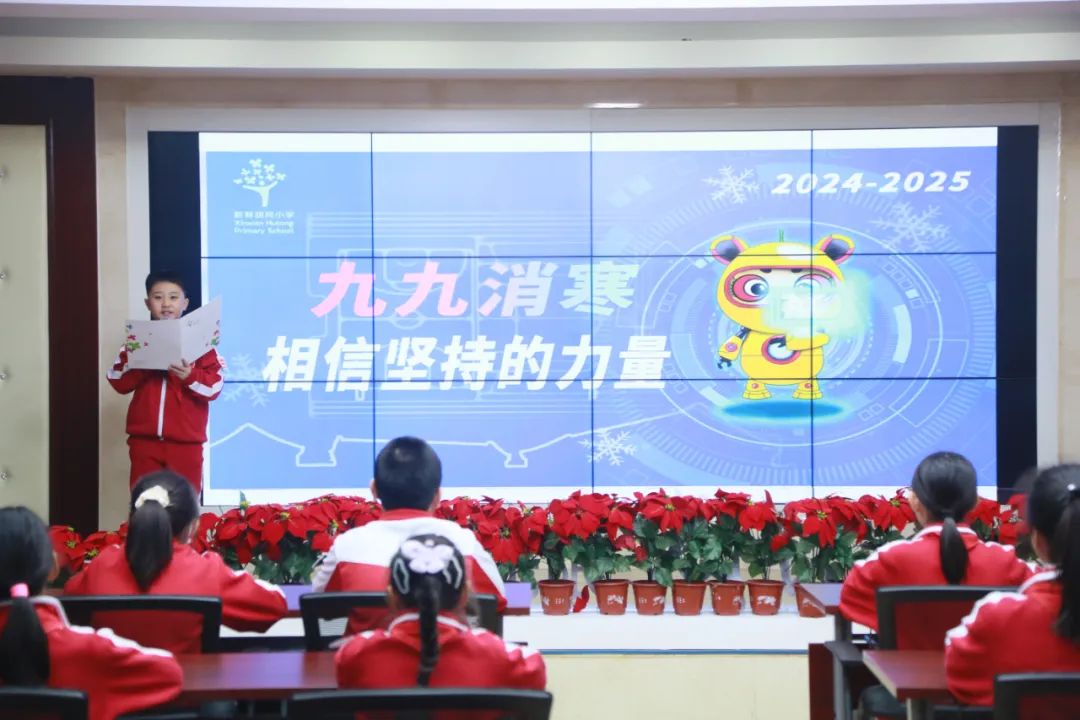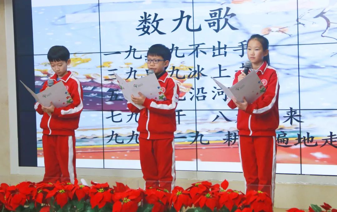 “古人以‘数九’的方式记录冬天的寒冷,从冬至开始,每九天为一个‘九’,数过九个‘九’,便是春暖花开之时……”在启动仪式上,学生代表讲述了“九九消寒”的含义。本次活动,学校设计了一份消寒活动清单,提供给学生菜单式的学习内容,供学生自主选择和参与。