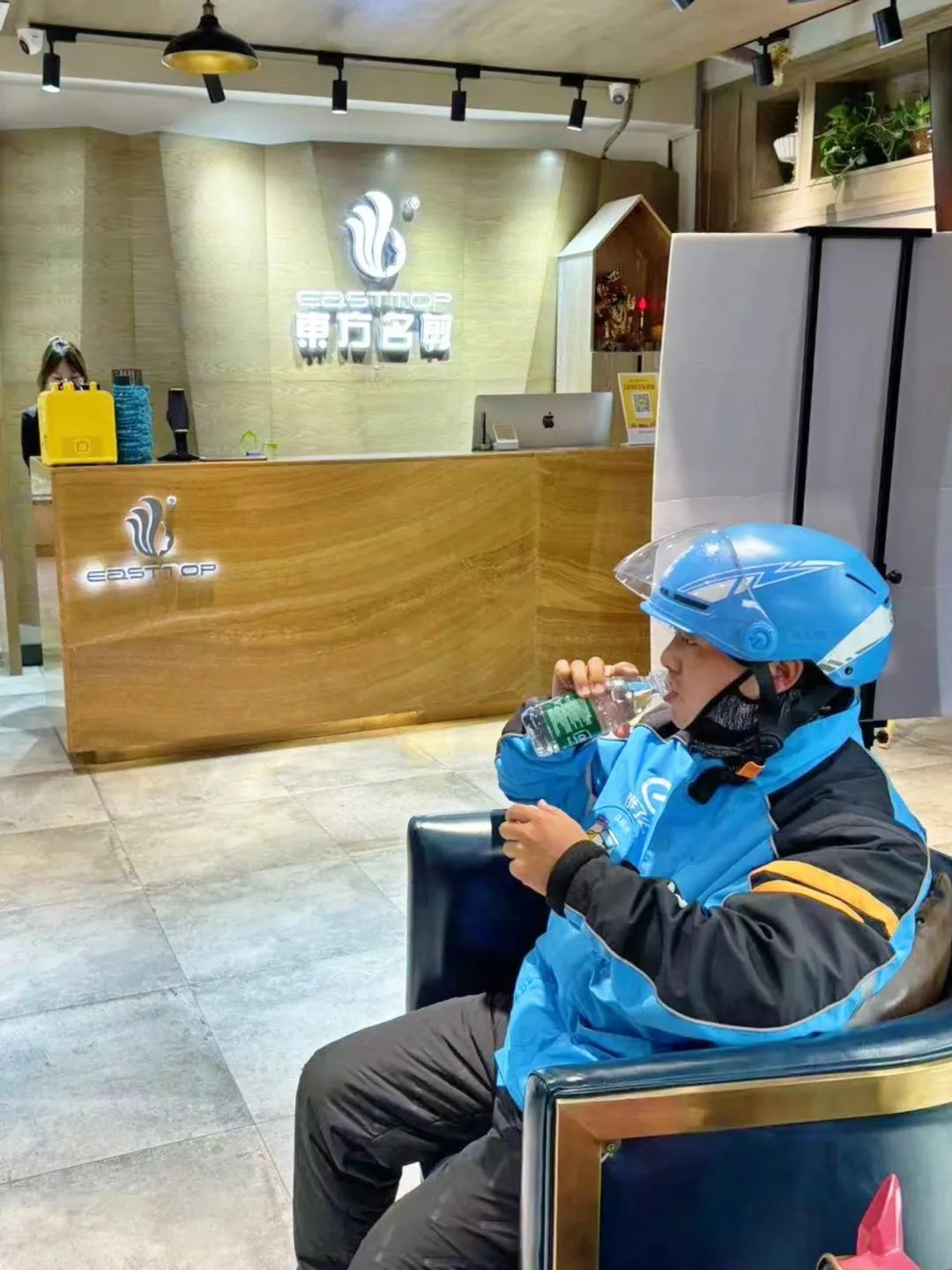 育慧北里社区针对骑手需求,携手道尔泰市场美食城推出“骑手优惠餐”,并提供充电、饮水、休息区,有效缓解他们“用餐难”“就餐成本高”问题,让一餐热饭暖胃更暖“新”。