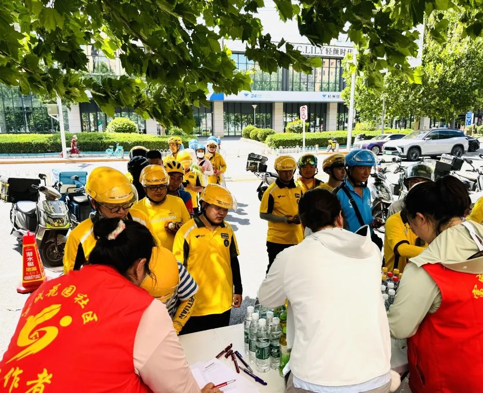 亚运新新家园社区为新就业群体发放“平安小哥卡”,将紧急联系人、联系电话、血型等信息登记在卡片上,并做好交通安全宣传教育,增强骑手安全行车意识及自我保护能力,为他们增添一份安全保障。