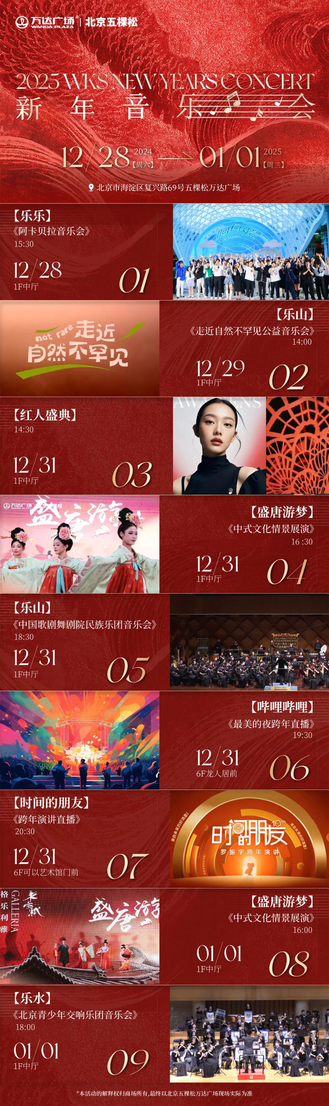 本届音乐季将在五棵松万达广场1至6层开展,共分为“乐水”“乐乐”“乐山”三个篇章,以民族音乐为主线,统筹高级别的演艺资源、强大的演出阵容,通过大规模的跨界合作,引领观众跨越时空,体验音乐的无尽魅力。