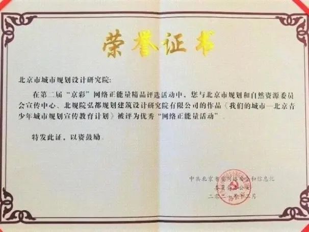 为落实《北京城市总体规划(2016年—2035年)》关于“坚持人民城市人民建、人民管,依靠群众、发动群众参与城市治理”的要求,2019年起,由北京市规划和自然资源委员会主办,北京市城市规划设计研究院、北京市规划和自然资源委员会宣传中心、北规院弘都规划建筑设计研究院有限公司正式联合发起“我们的城市——北京城市规划社会宣传计划”。