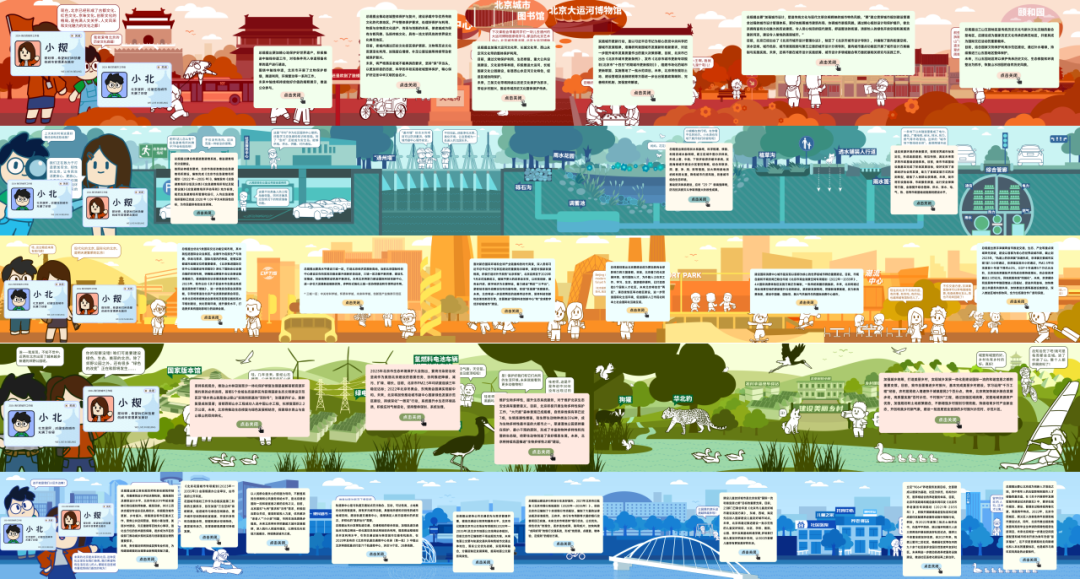 此外,项目于“北京印迹 inBeijing”公众号开辟全新专栏《我们的城市·北京的故事》,围绕北京城市总体规划实施第二阶段重点工作成果开展基于新媒体平台的系列宣传。首年选取“总规是什么”“总规实施成果总览”“城市雨水应对”及“儿童友好城市建设”四个主题,联动市规划院含研究室在内的12个部门近40人参与专业内容输出,北规弘都院品牌社培中心进行宣传化转译及设计落地,于今年陆续发布了九期可阅读可交互的宣传成果。
