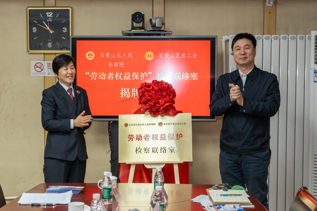 为深入贯彻党的二十大关于“完善劳动者权益保障制度”的重要精神,落实《北京市人民检察院 北京市总工会协同推进运用“一函两书”制度 保障劳动者合法权益工作实施细则》,深化区检察院与工会协作机制,更好维护广大劳动者合法权益,12月26日,石景山区人民检察院与石景山区总工会召开协同推进运用“一函两书”制度保障劳动者合法权益工作座谈会暨“劳动者权益保护”检察联络室揭牌仪式。