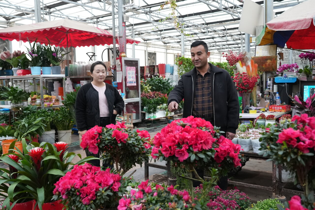 “马上就到新的一年了,为了迎接新年,我和家人一起来这里买花。他家的花卉品种多,色泽鲜艳,价格也很优惠,我和家人都很满意。”顾客阿依排日·多力昆说。