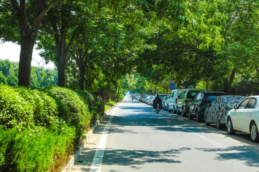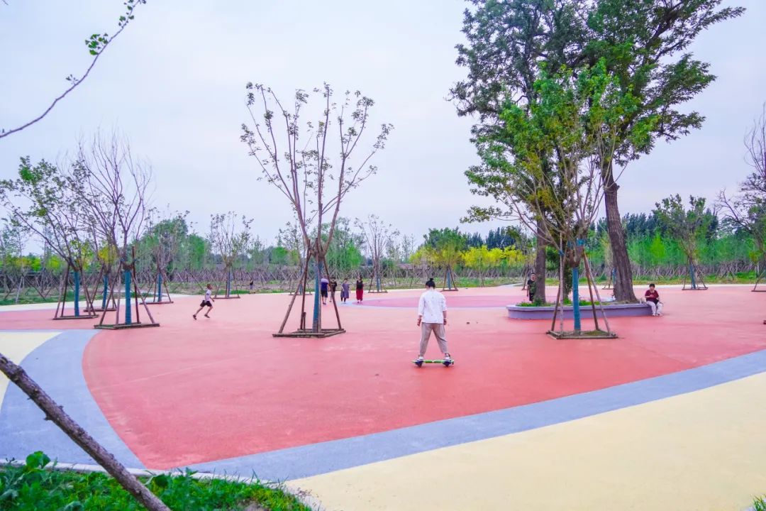 居民在就近的公园里能与林荫一路相伴,骑行、跑步、玩耍各得其宜;国槐、油松、金叶榆等植被均注重季节变化,因地制宜在公园路口、路侧等点位栽种,让居民在愉悦身心的同时,也能观赏身边绿意盎然的环境,编织起金盏人畅游自然的美好生活。