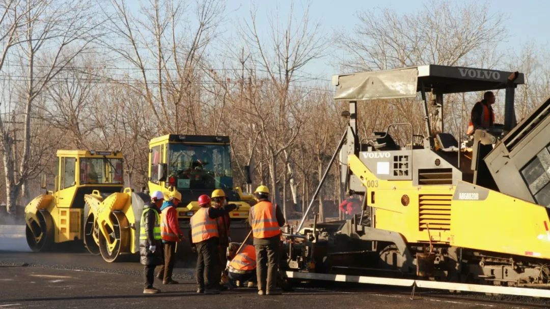 5台摊铺机,16台压路机,100余名人员,历经8小时不停歇作业,于今日下午完成2.2万平方米的摊铺任务。