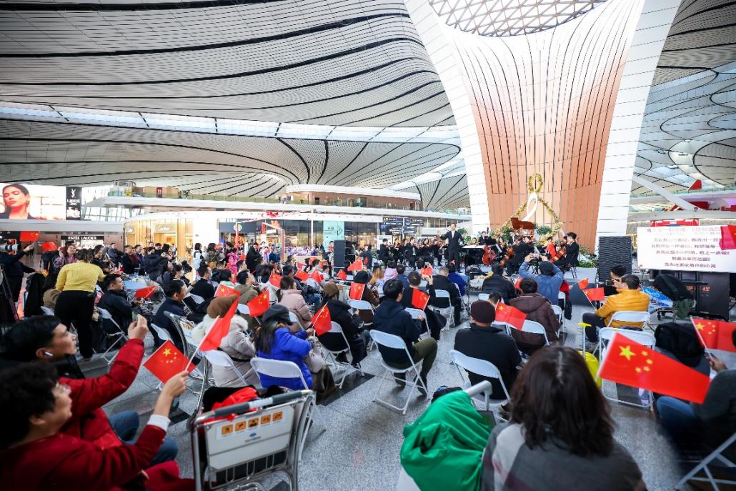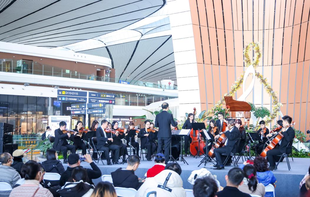 2024年,大兴机场携手首都图书馆,分别邀请中央歌剧院、中国广播民族乐团、北京歌剧舞剧院等专业团队带来交响乐、民族乐等多种风格演出活动,演奏中外知名曲目100余首。大兴机场创新发挥航站楼空间优势,将机场这一“城市会客厅”与“音乐厅”融合起来,通过表演多民族经典艺术,凝聚起这座国际航空枢纽中各国旅客的情感共鸣,为每一段旅途增添温度。