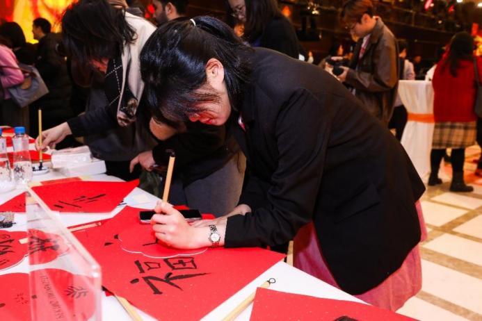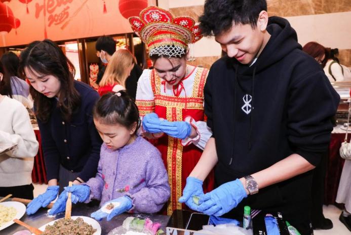 晚会伊始,充满欢声笑语的中华文化体验活动首先开启。在老师们的悉心指导下,同学们纷纷动手包饺子、包汤圆,并认真学习书写福字,将对新年的美好祝愿融入一笔一划之中。猜灯谜环节更是将现场气氛推向高潮,留学生和外国专家们热烈讨论,尽情享受解谜的乐趣,深入感受中华文化的独特魅力。