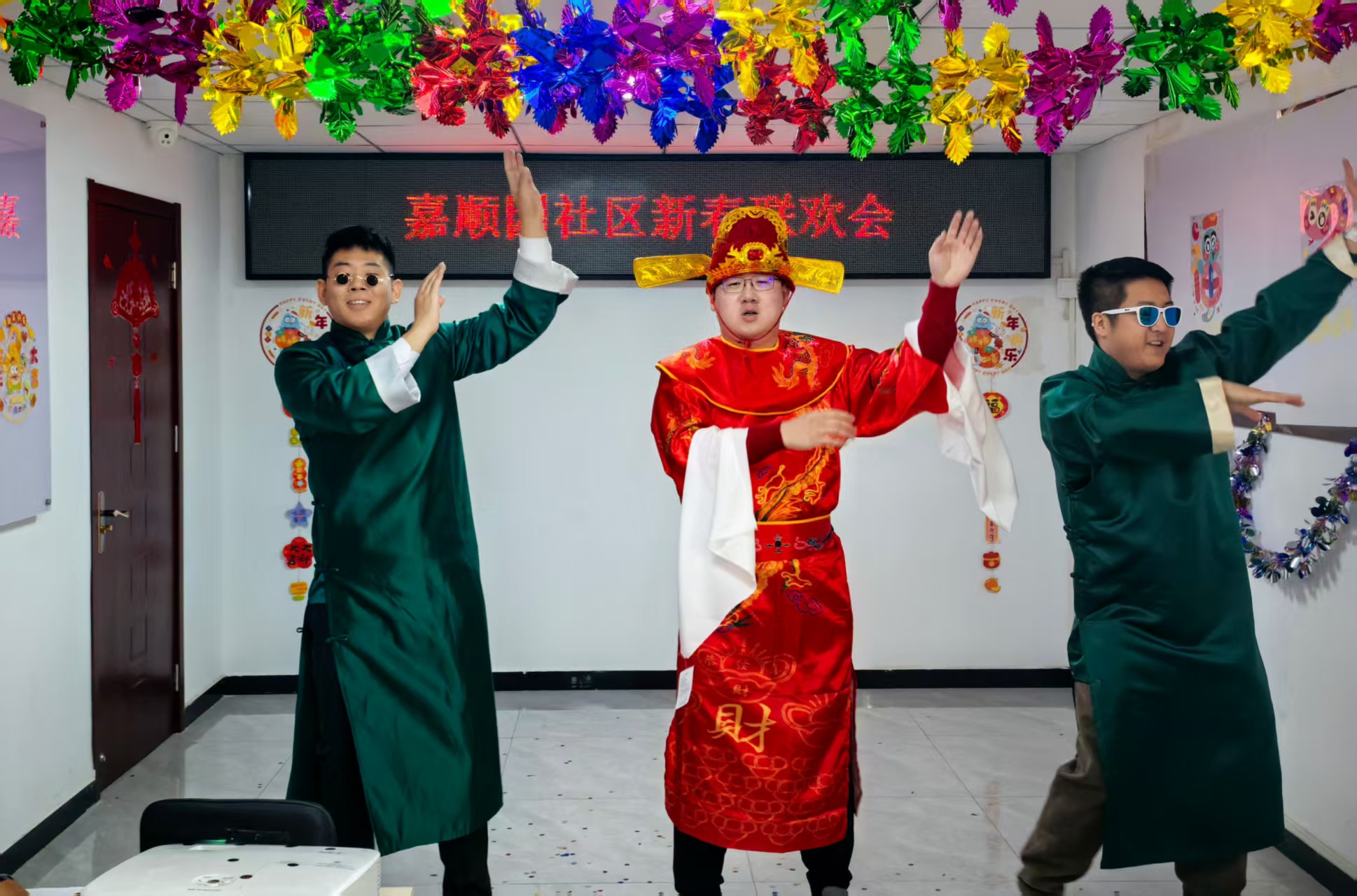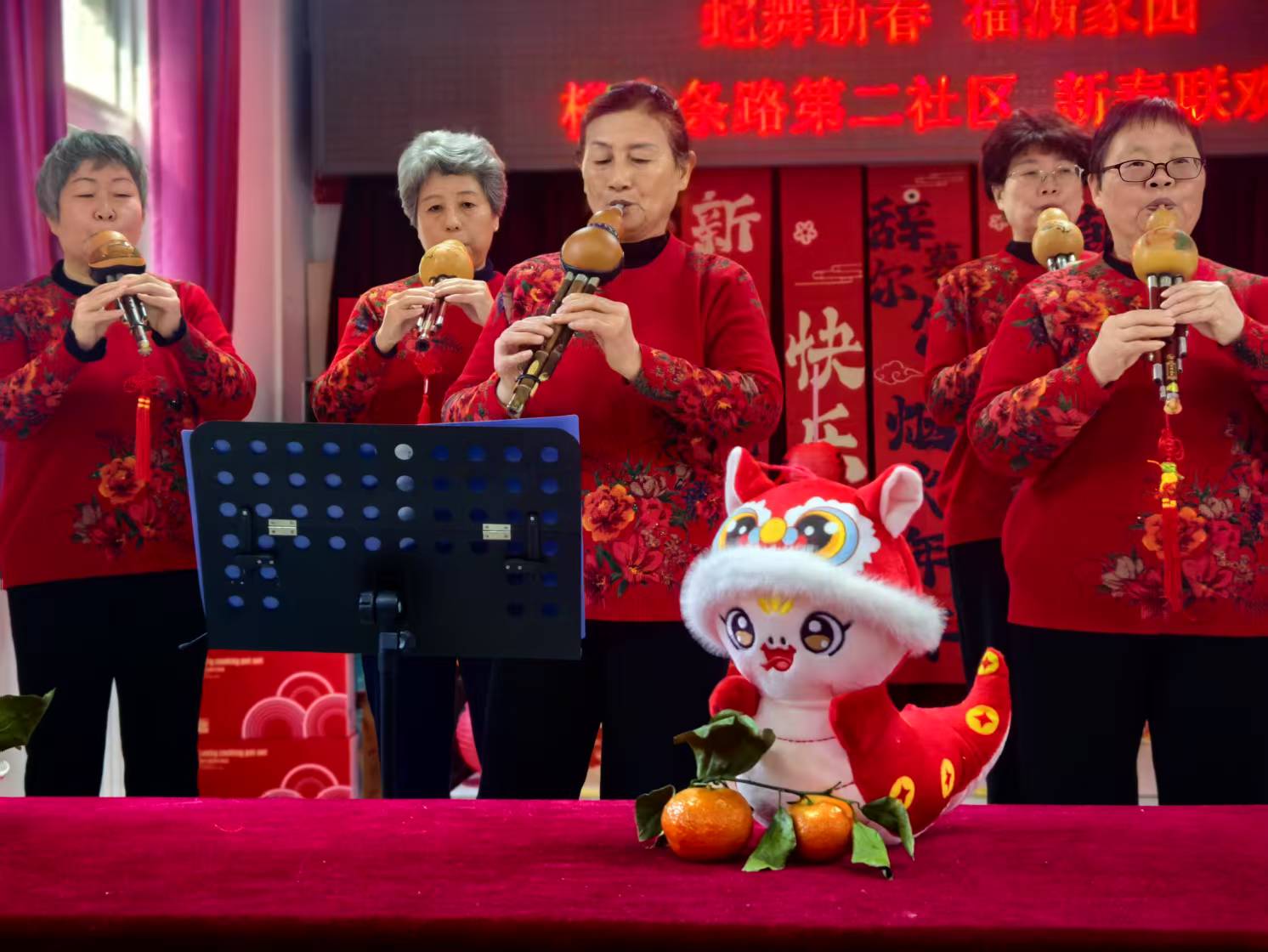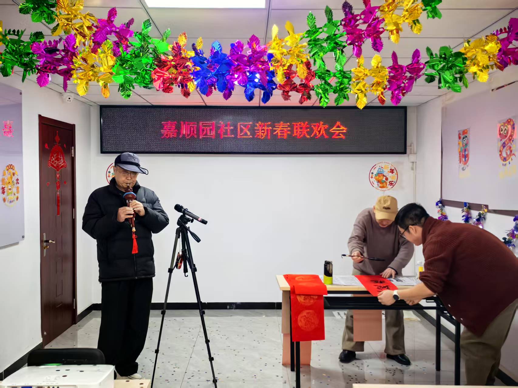 而在嘉顺园社区,联欢会主打“中国第一个非遗春节”特色,书法、京剧、相声、民乐轮番上演。嘉顺园“嘉·家顺”日巡服务队志愿者孙立文今年74岁,他不但热心社区工作,还是远近闻名的民乐高手。今年的联欢会,他使用自制的传统乐器箫、葫芦丝,演奏了经典曲目《女儿情》《傣乡月色》,带大家感受中国传统艺术的独特魅力。