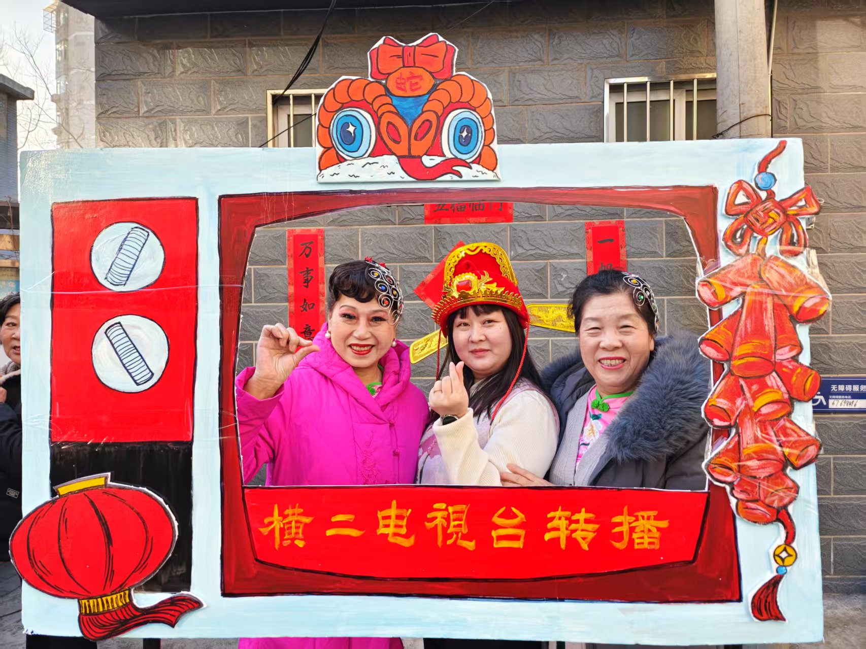 经过长达一个月的紧张筹备,横七条路第二社区第一届“电视台春晚”准时开演,“复古电视台”打卡点一亮相,就把大家带入了小时候年三十围坐在电视机前看春晚的回忆,居民们纷纷在“荧屏”中出镜打卡,喜庆氛围瞬间点燃。