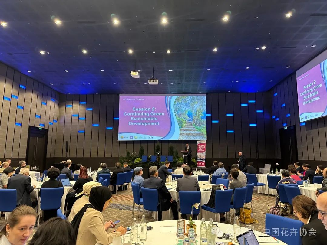 会议期间召开了绿色城市大会和园艺行业交流会,绿色城市大会有来自泰国、丹麦、新加坡代表介绍各自绿色可持续实践的发展以及实践经验案例。在园艺行业交流会上,中国花卉协会零售业分会秘书长林巧玲重点介绍了花乡花木集团和丰台区花卉产业的情况,分享了当前中国花卉零售业的市场现状,还针对北京丰台在国际贸易和花卉展览方面的合作进行推介。