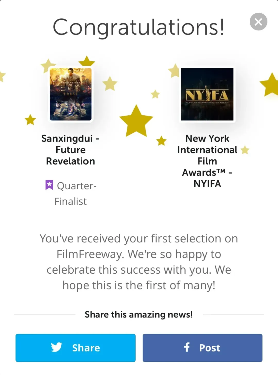 《三星堆:未来启示录》第一季全端传播总量突破1.6亿次,抖音话题播放量达1.35亿次,跻身抖音短剧最热榜前五,并稳居科幻类短剧播放量榜首。该剧不仅入选“跟着微短剧去旅行”创作计划和国家广电总局《2024网络视听精品节目合辑》,还在国际电影节上屡获殊荣,成功入围纽约国际电影节、法国戛纳世界电影节和美国洛杉矶国际电影节,展现了中国科幻影视的创新实力。