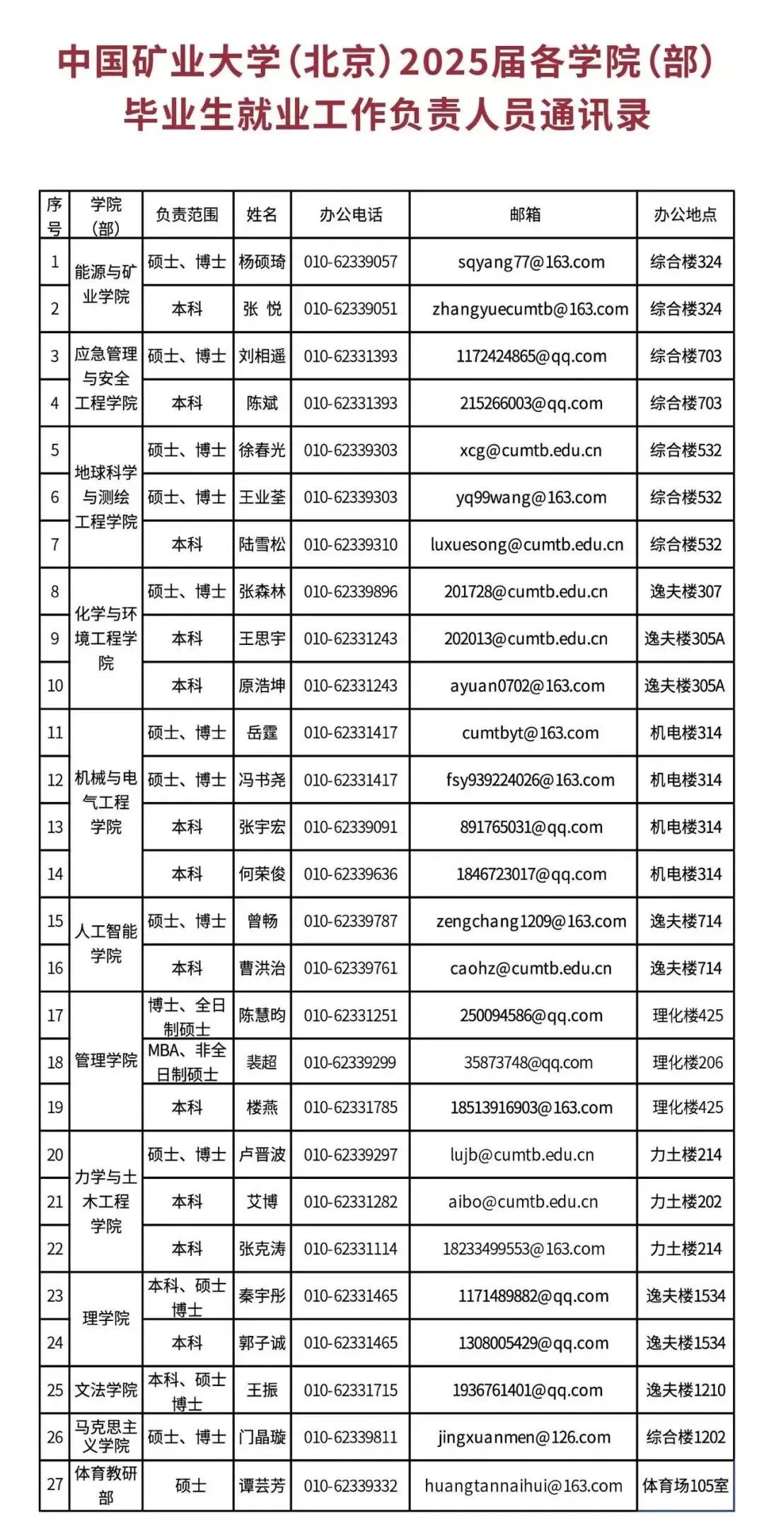 相关招聘通知安排请持续关注中国矿业大学(北京)就业创业信息网(http://jy.cumtb.edu.cn/)首页及微信公众号“中国矿大北京就业创业”(cumtbjy)。