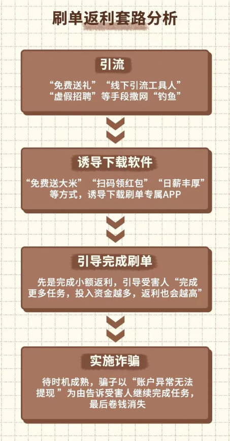 一旦受害人开始大额“垫资”做任务,诈骗分子就会以需要做连单任务或者输错银行卡号等理由,拒绝给受害人返款,要求受害人继续做任务,以冲正所谓的“错误”,直至受害人察觉自己被骗。
