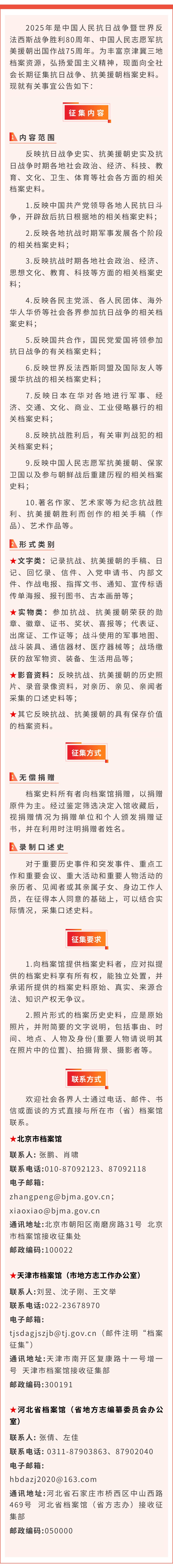 京津冀三地档案馆关于征集抗日战争、抗美援朝档案史料的通告