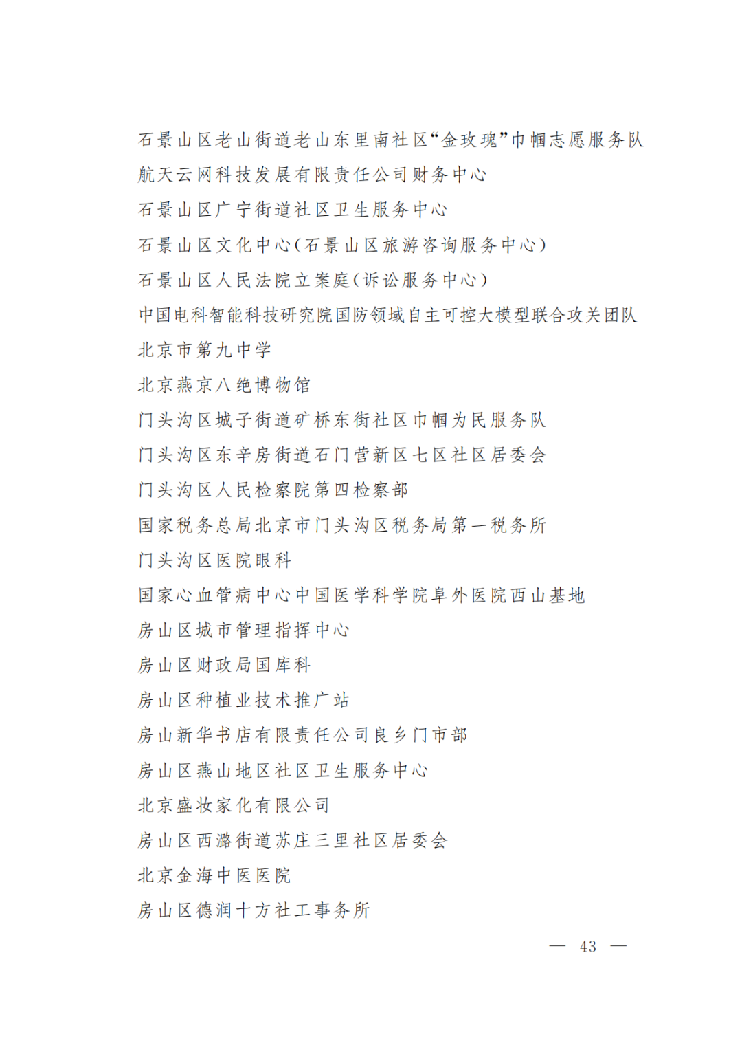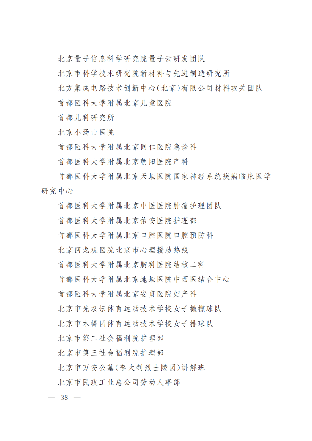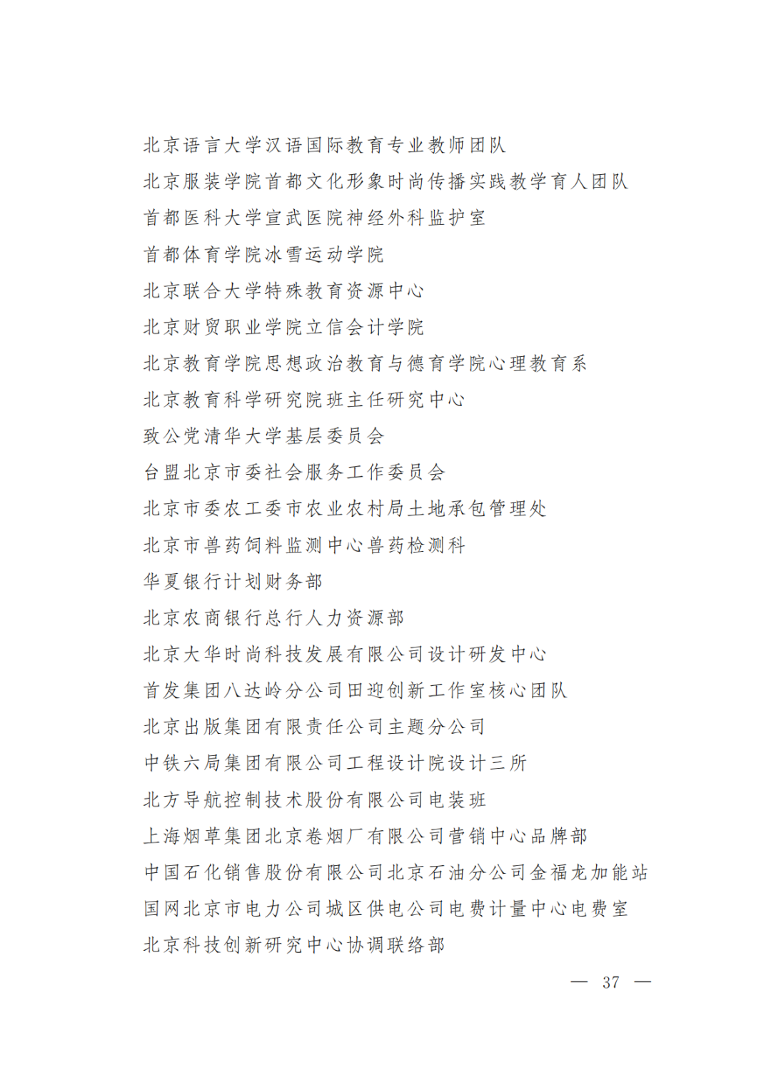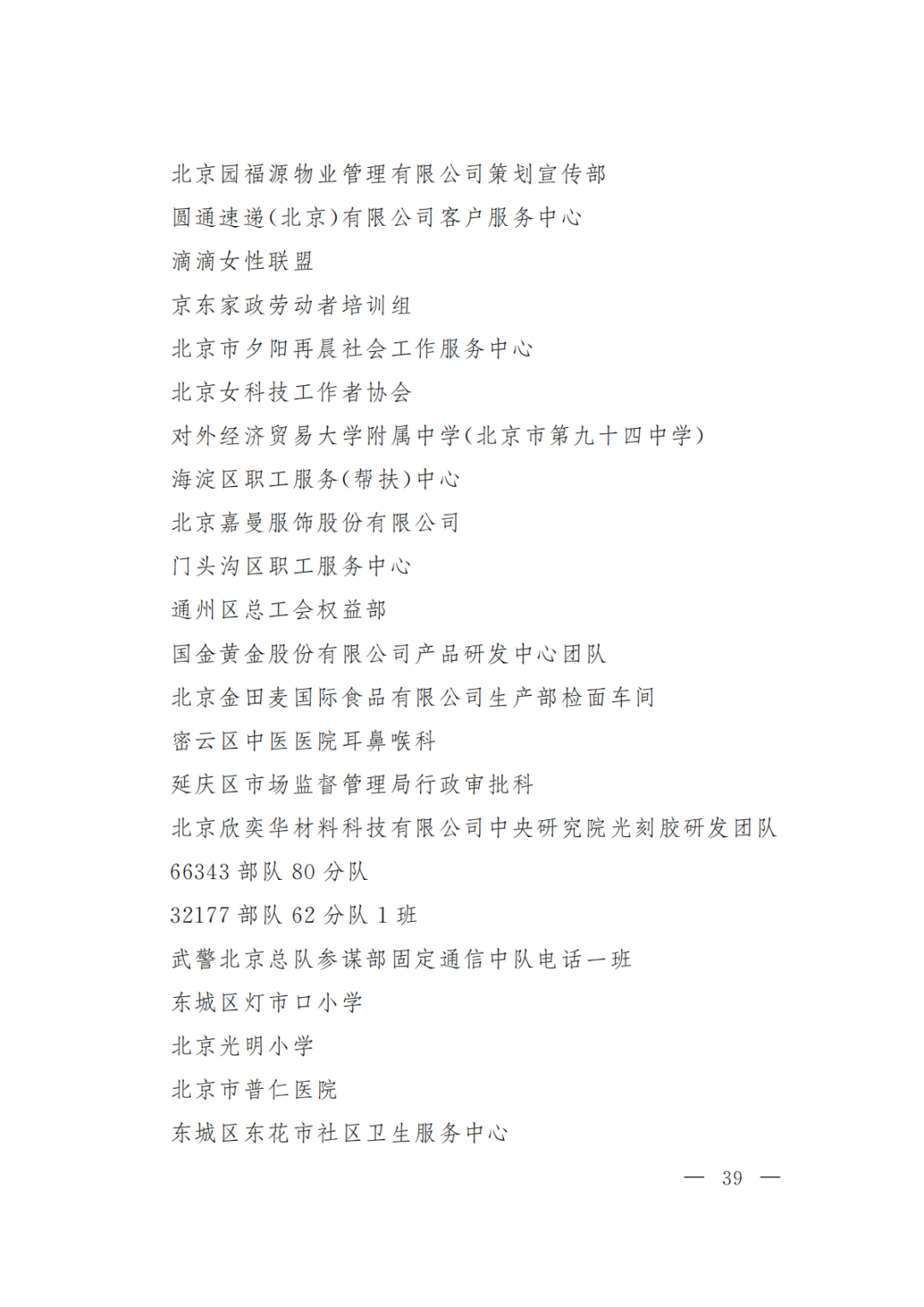 北京市三八红旗集体名单(300个)