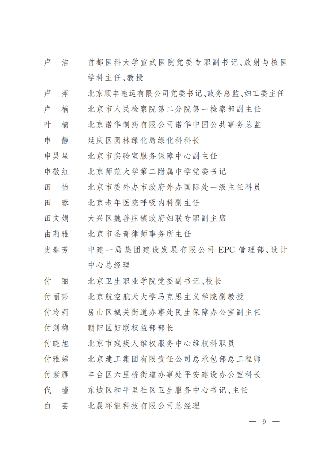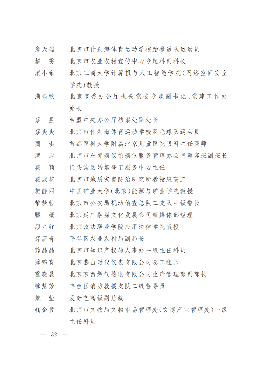 北京市三八红旗奖章名单(600人)