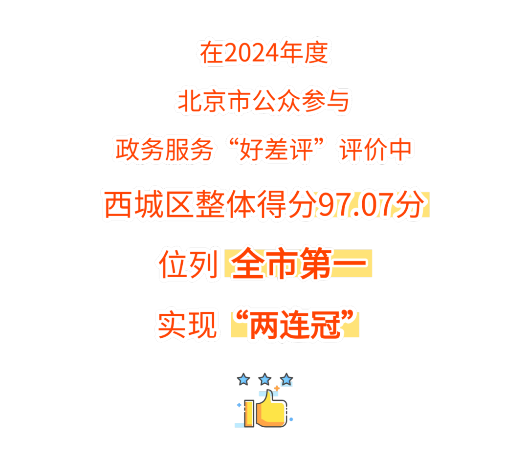 下一步,西城区将持续以公众参与政务服务“好差评”评价为导向,以“做最好的政务服务”为目标,带领全区60余家体系单位、1300余名政务服务工作者,着力打造更高水平“红墙政务”品牌,打造一流营商环境。