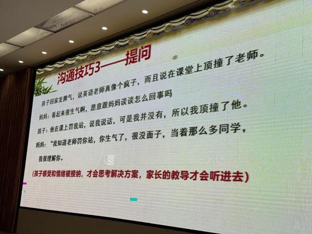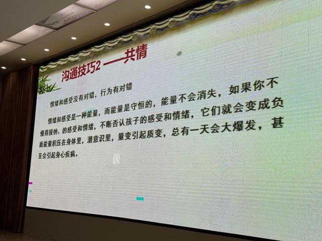 张媛枝老师以“如何培养高情商的孩子”为切入点,指出家庭沟通是孩子情商发展的土壤。她通过真实案例分析,生动诠释了“情绪忽视型”与“情感支持型”家长的沟通差异:“当孩子说‘数学课好无聊’时,一句‘别抱怨,认真听讲’可能关闭对话窗口,而‘你听起来有点沮丧,能和我聊聊吗?’则会为孩子打开情绪出口。”