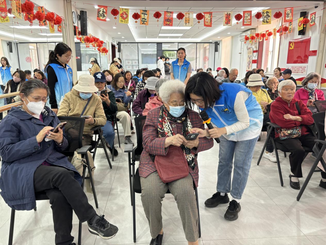 讲座现场气氛热烈,老年人们对AI技术表现出极大的兴趣,不时向讲师和志愿者提问,主动尝试使用相关功能。部分老年人通过实践操作,成功利用DeepSeek进行图片识别、信息检索等任务,切实感受到科技为生活带来的便利与乐趣。