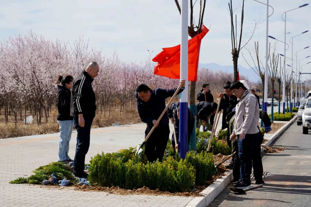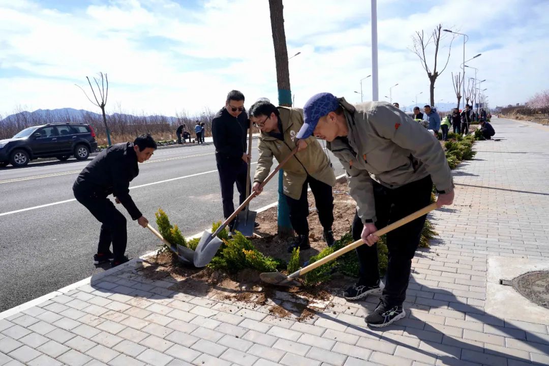 经过一下午的辛勤劳作,原本空旷的道路两侧整齐地排列着新栽种的树苗,它们在微风中轻轻摇曳,展现出勃勃生机。此次种树活动不仅为大地增添了一抹绿色,也为改善生态环境做出了积极贡献。