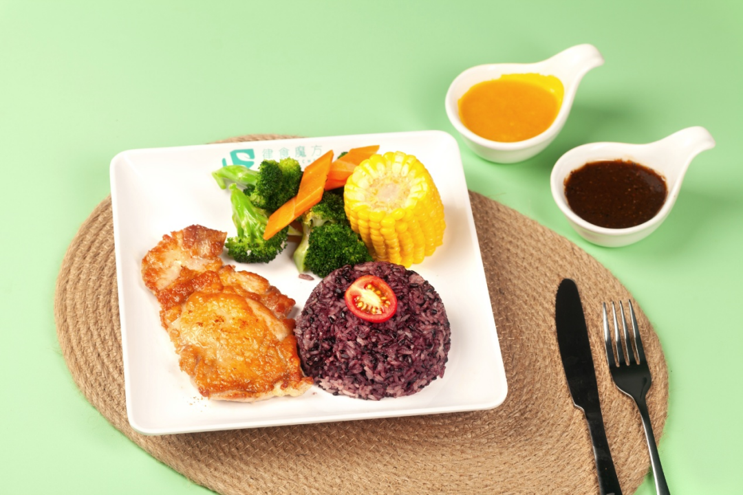 香煎鸡腿排+杂粮饭+蔬菜+碳水(4选1)+例汤