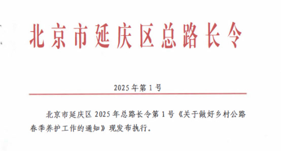 近日,北京市延庆区发布1号路长令,标志着延庆区乡村公路进入了全面开展春季养护工作的关键时期。路长令要求,乡村公路各管理单位要认真落实文件精神,通过春季养护工作,及时修复冬季受损路面,清理路域环境,完善交安设施,提升路况质量,确保乡村公路安全畅通。