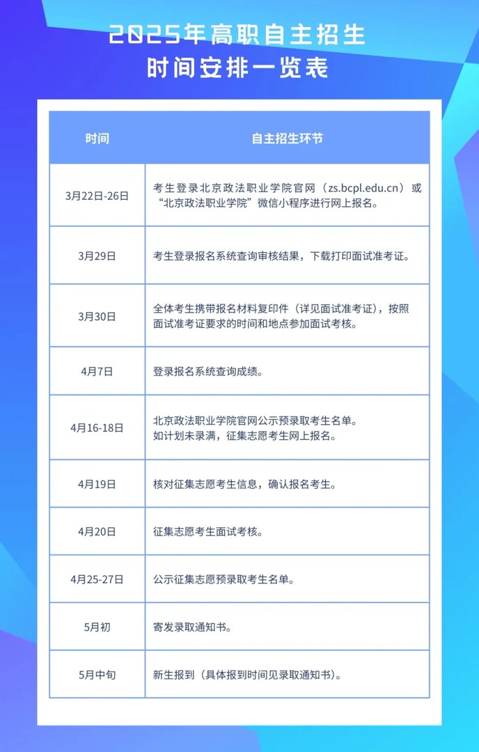 为了更好地服务报考北京政法职业学院的各位考生,我们对2025年自主招生考试流程和相关安排进行了细致梳理。
