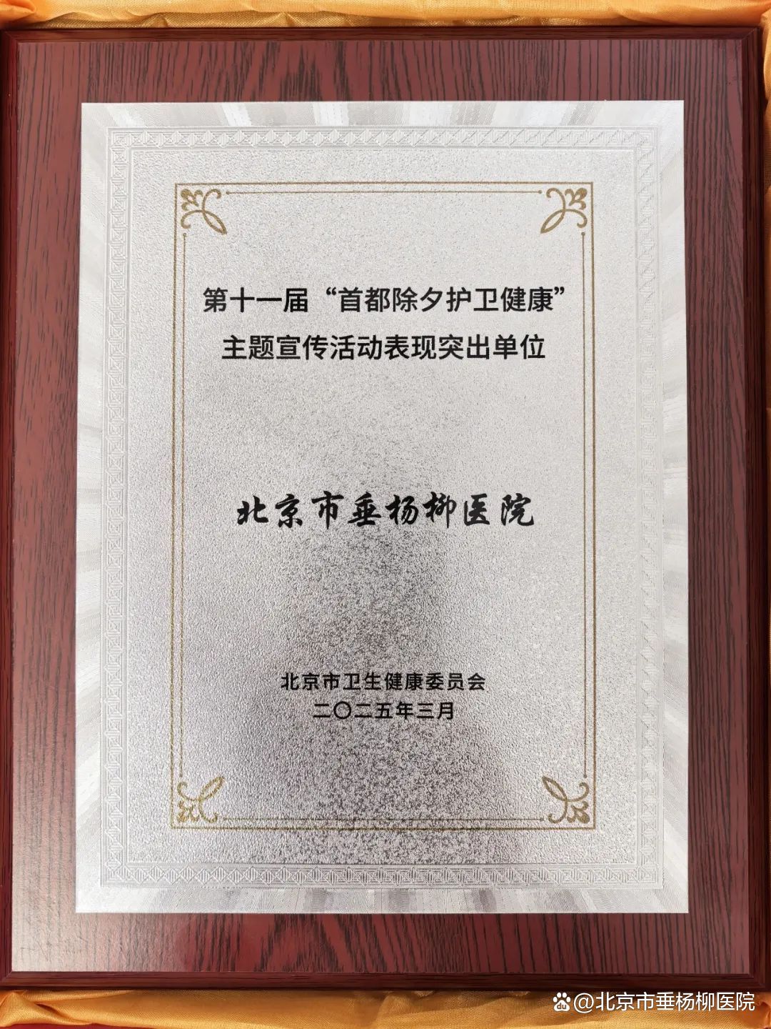 2025年3月28日,在北京市卫生健康宣传思想文化工作会议上,北京市垂杨柳医院获评第十一届“首都除夕护卫健康”主题宣传活动表现突出单位。
